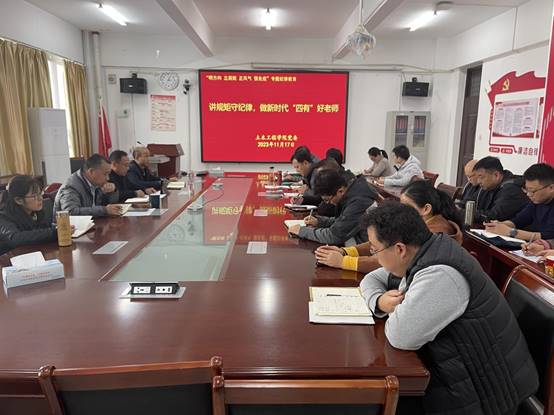 为开展好“明方向、立规矩、正风气、强免疫”专题纪律教育,推动党风廉政建设和师德师风建设工作走深走实,11月17日下午,金沙检测线路js95在学院503会议室开展了“书记讲纪法”活动。学院党政领导班子、各系(教研室)主任、党支部书记及学院全体教工参加会议。